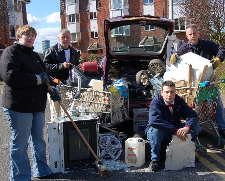 Oh dear ... we've been here before: Paul, Rupert, Lisa and Dan Fox doing a DIY clear-up in April 2006