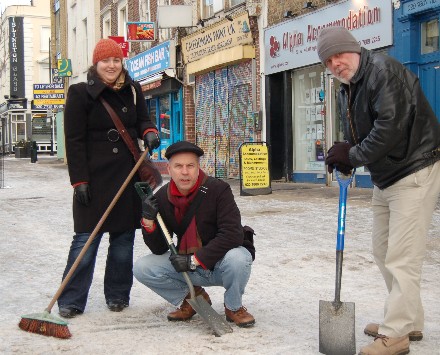 Frustrated by Islington Council’s failure to clear treacherous snow and ice, Labour Councillors Paul Convery and Rupert Perry took out spades and broom to clear from Caledonian Road pavements on Saturday morning, January 9th.