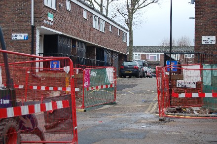 And because these roads are quite narrow, the excavation works have caused immense problems for residents. Earlier in January, we learned that Islington’s refuse trucks could not back into the streets because of the works. Instead of sorting out an alternative way to remove the refuse, the contractors just left the garbage in the bins. After a couple of weeks things got out of hand with great piles of bin sacks piled up on the estate. We got a special delivery sorted out using smaller collection vehicles and a special gang of collectors. But looking at the current round of excavations, it looks like Rydston Close is going to experience problems again this week. So, we’ve alerted the Council’s streetscene managers to keep an eye on things.