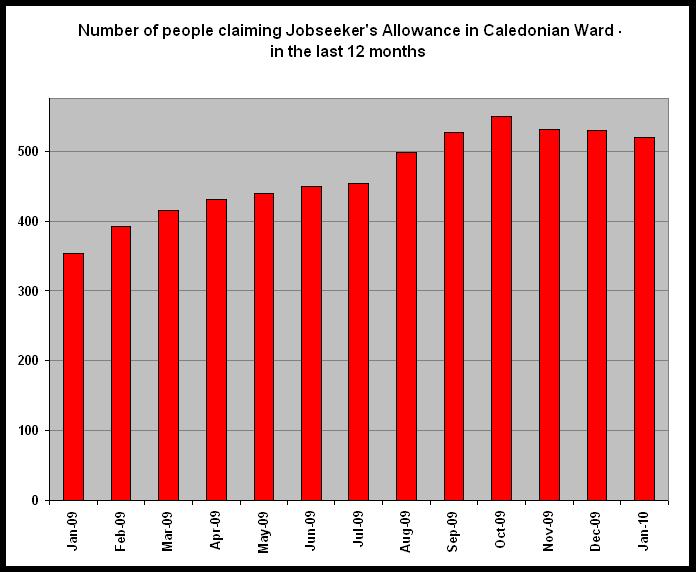 However, we still have more than 500 residents in this ward who rely on Jobseeker’s Allowance until they find another job. Over the last year, typically each month, about 80 people lose their jobs … but roughly the same number find a job and leave the jobless register. Hopefully, as the recovery strengthens, more people will be signing-off and rather fewer signing-on.