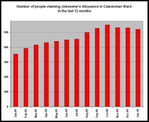 The worst of the recession is over according to the latest unemployment figures for Caledonian Ward. Significantly, the jobless total has peaked at less than half the total recorded during the last recession.