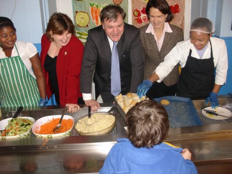 Thornhill primary school this morning welcomed Ed Balls MP, the Secretary of State for Schools, as he announced that the Government will underwrite the funding for the Borough’s innovative scheme to provide a free school meal to every child in primary schools.