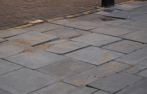 The paved area on Caledonian Road at its junction with the pedestrianised Tilloch Street (just before the Co-op) is a good example. The slabs are continuously breaking-up from utility works and normal usage.