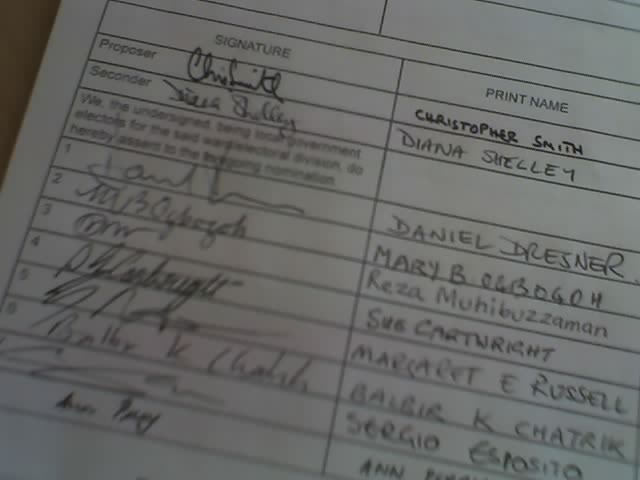 The nomination papers for Rupert, Paul and Charlynne also include the names of prominent community campaigners in our neighbourhood. We are grateful to have their personal support.