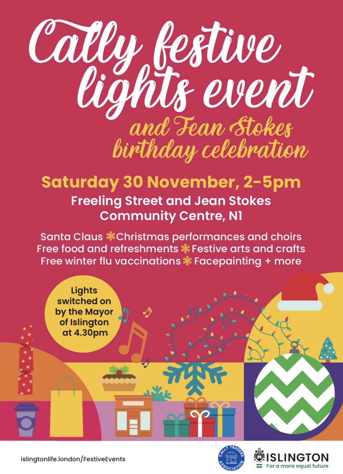 The Cally’s annual Festive Lights switch-on is happening on Saturday 30th November. It’s at Freeling Street and in the Jean Stokes Centre. The event will feature music and local choir performances, free food and mince pies from local retailers, activities for children, a roaming Santa – and lots more!